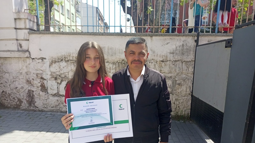 YEŞİLAY CEMİYETİ TARAFINDAN DÜZENLENEN "SAĞLIKLI NESİL SAĞLIKLI GELECEK" TEMALI ŞİİR YARIŞMASINDA OKULUMUZ ÖĞRENCİSİ YAĞMUR BUDAK BİRİNCİ OLMUŞTUR. ÖĞRENCİMİZİ TAKDİR EDER, AHMET KARAKUŞ HOCAMIZA TEŞEKKÜR EDERİZ.